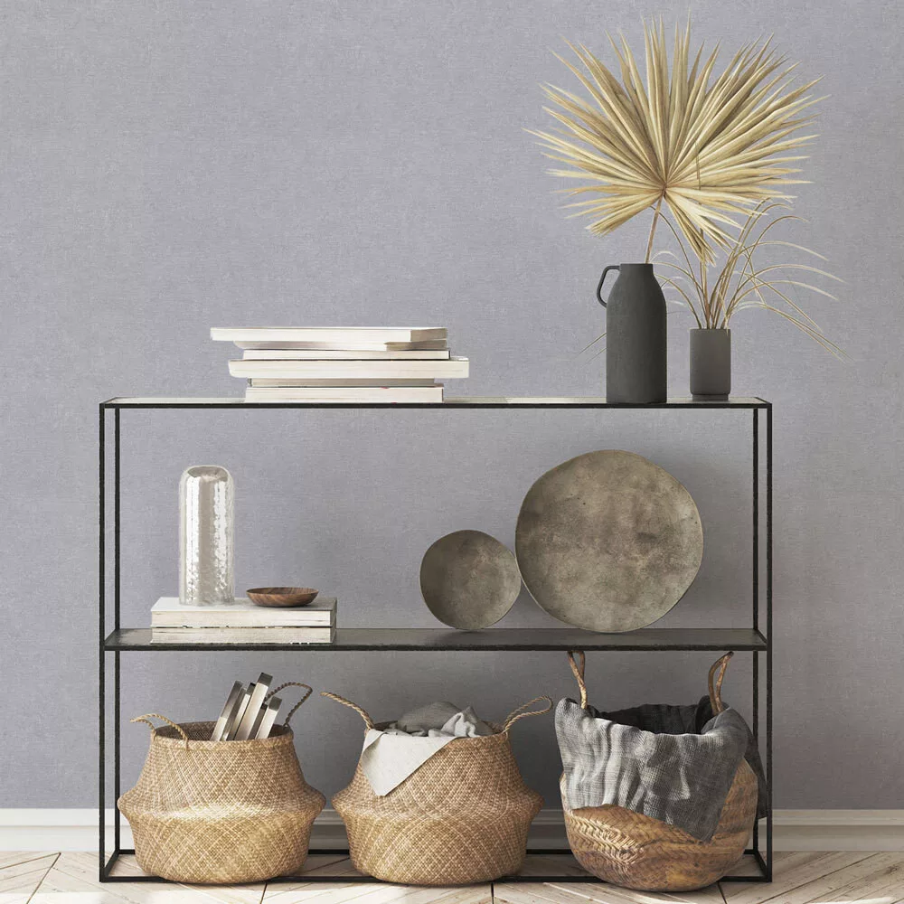 Így ideális megoldás például egy hangsúlyos levélmintás vagy geometrikus dekor tapéta mellé, ahol szükség van egy nyugodtabb, textúrált felületre.
