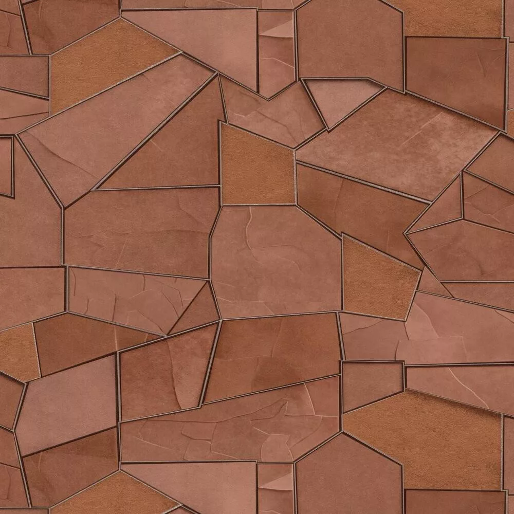 Geometrikus mintás dekor tapéta  3D hatással – modern design faldekor nappaliba és hálószobába, rozsdabarna színben