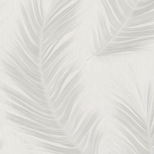 Elegáns ,lágy vonalvezetésű tapéta  toll motívummal halványszürke árnyalataban
