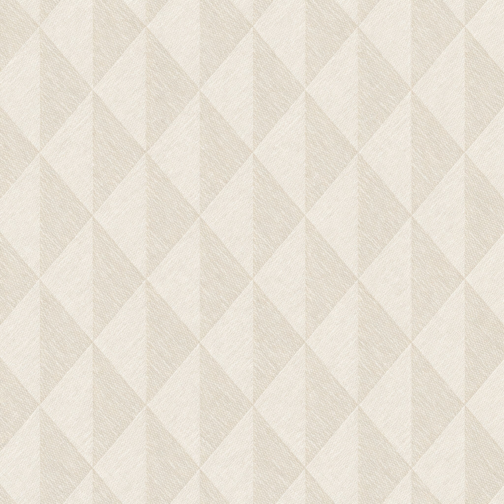 Elegáns krém színű, finoman texturált geometrikus tapéta rombuszmintával. Letisztult, modern enteriőrök tökéletes kiegészítője, amely világos és harmonikus térérzetet teremt..