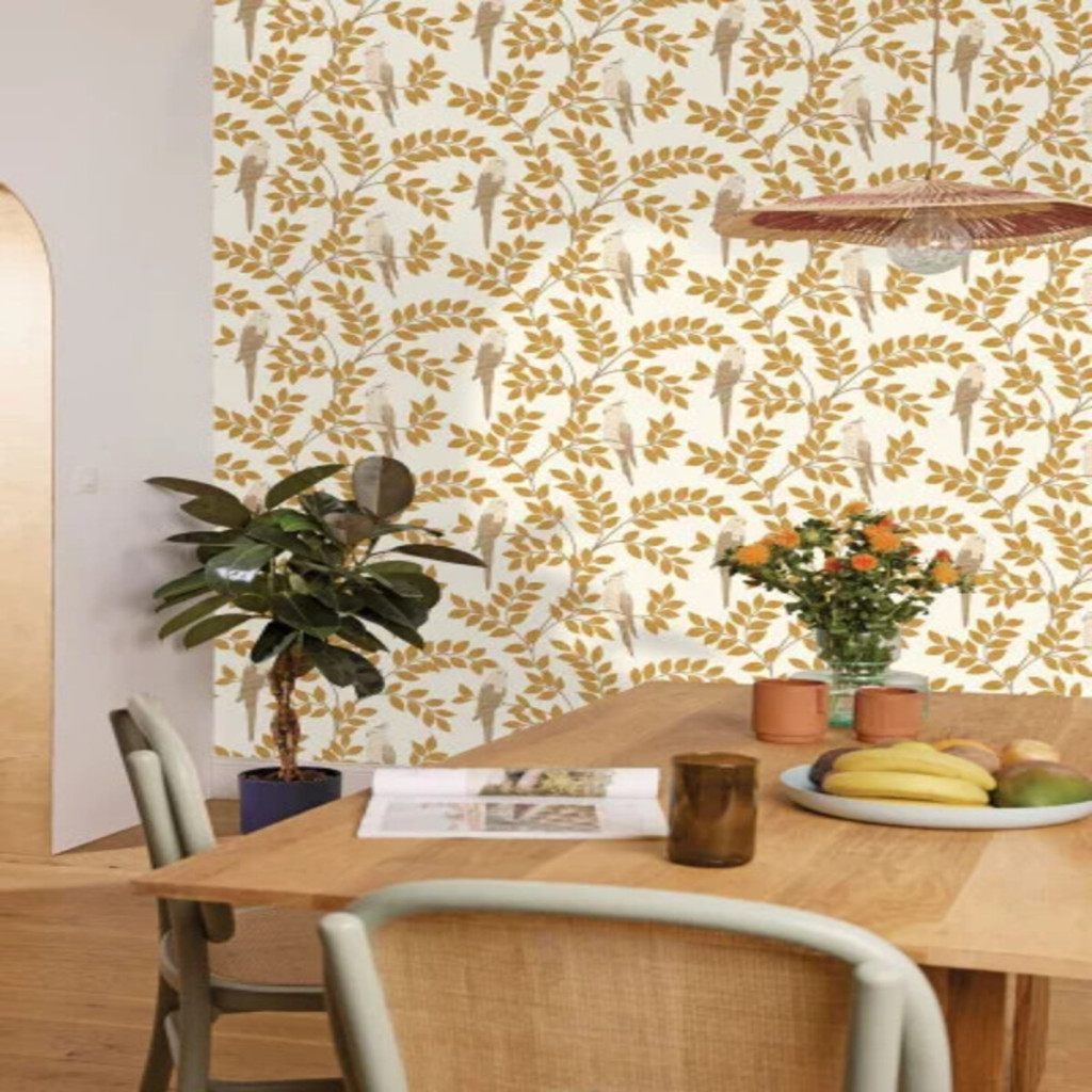 A botanikus és állatmotívumos tapéták egyre népszerűbbek a modern lakberendezésben, hiszen természetes és elegáns megjelenést biztosítanak. A madaras levélminta jól illeszkedik skandináv, természetközeli vagy klasszikus enteriőrökbe is.
