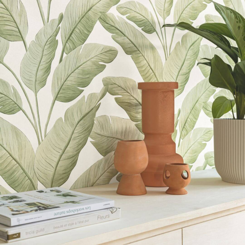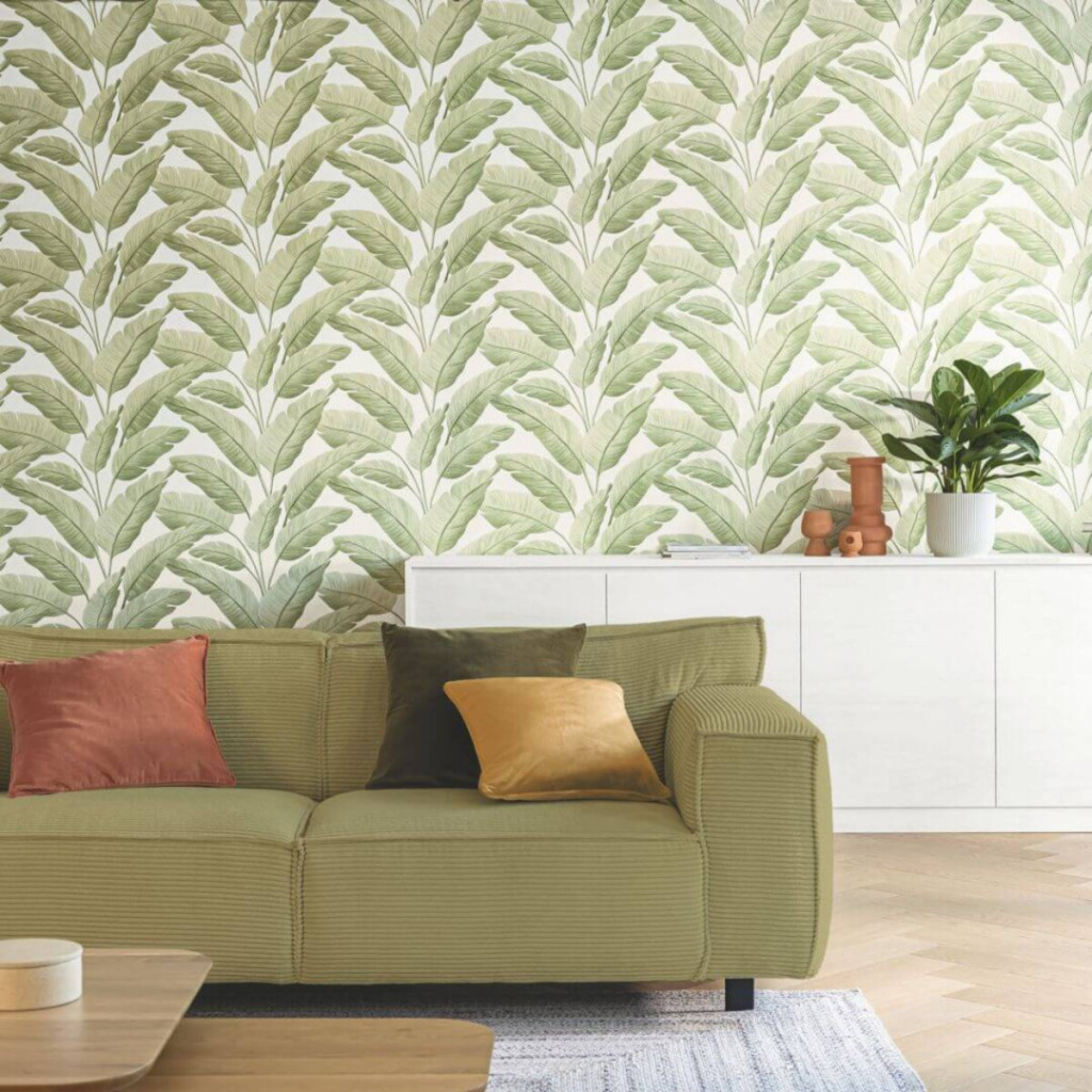 A természet inspirálta minták a modern lakberendezés egyik legnépszerűbb trendjét képviselik. A dekoratív levélminták látványos fókuszpontot képeznek a helyiségben, ezért kiváló választás hangsúlyos dekorfal kialakítására.