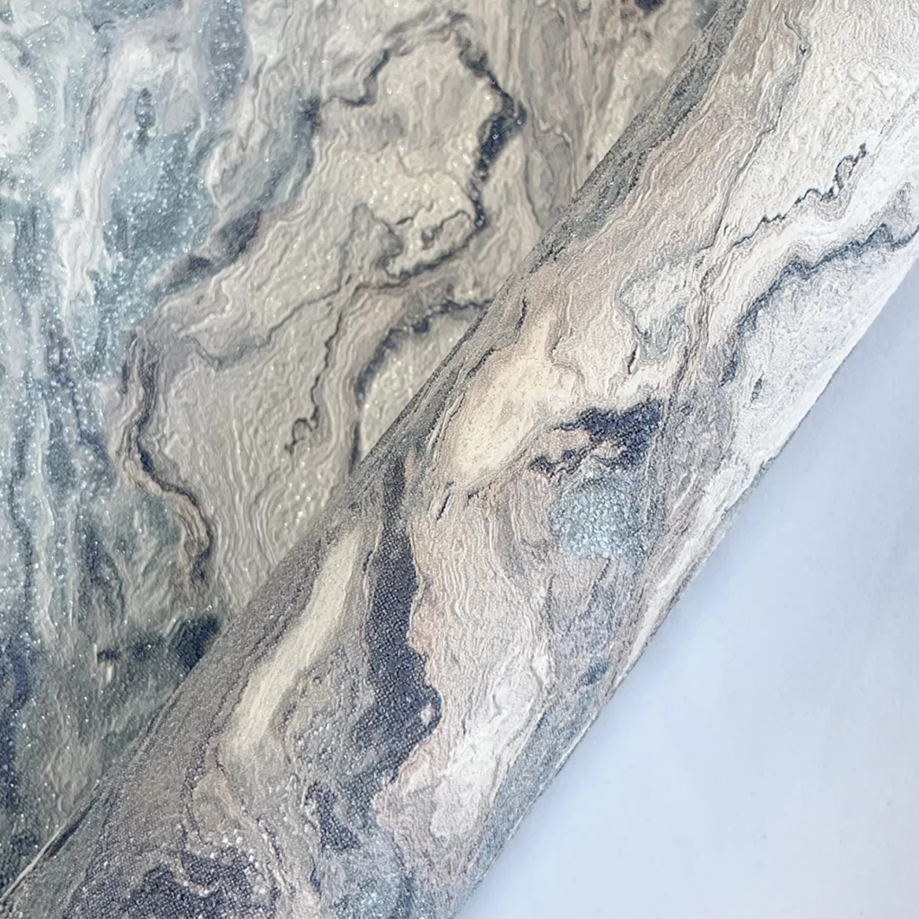 Elegáns márványhatású tapéta finom, örvénylő kőmintával és texturált felülettel. Tökéletes modern és exkluzív enteriőrök faldekorációjához.