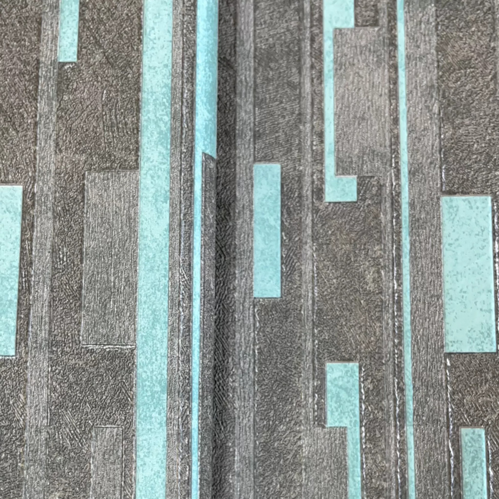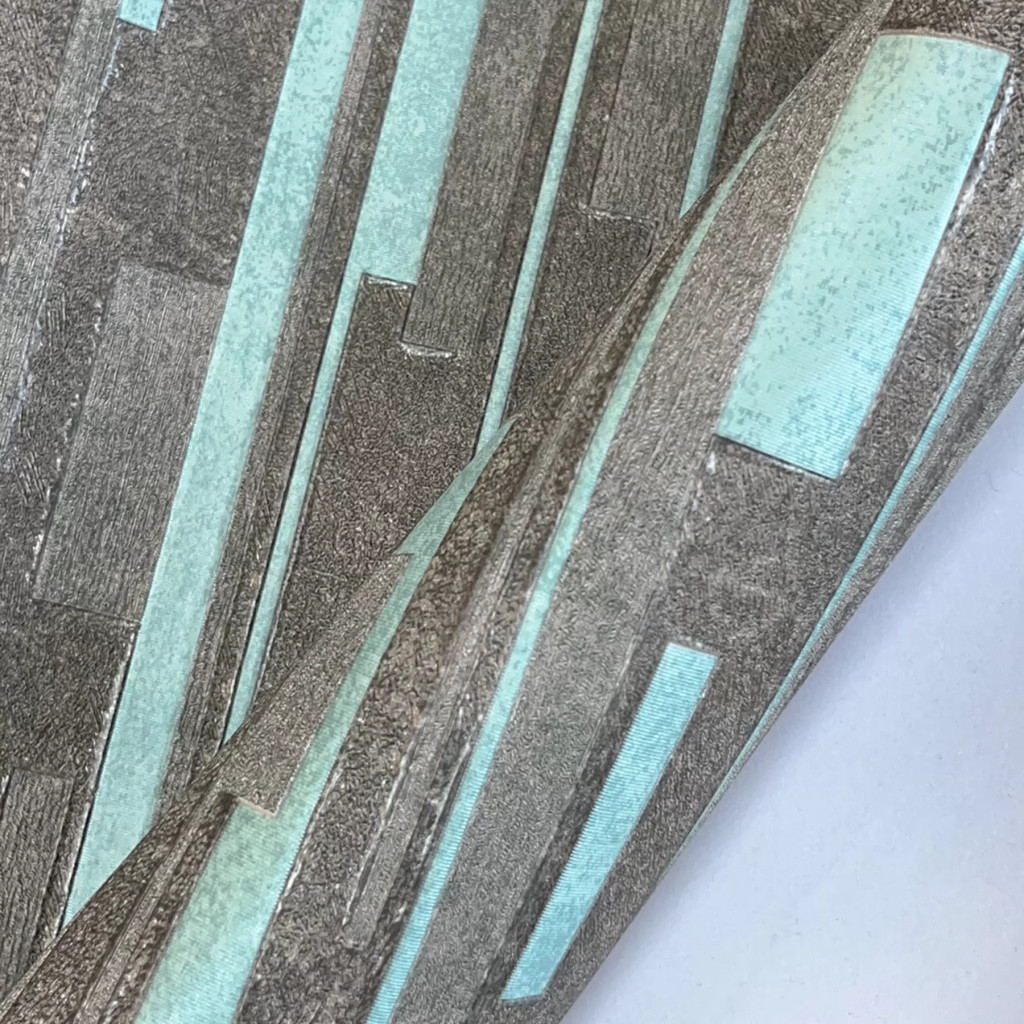 Modern geometrikus mintás tapéta strukturált felülettel, barna-türkiz színben