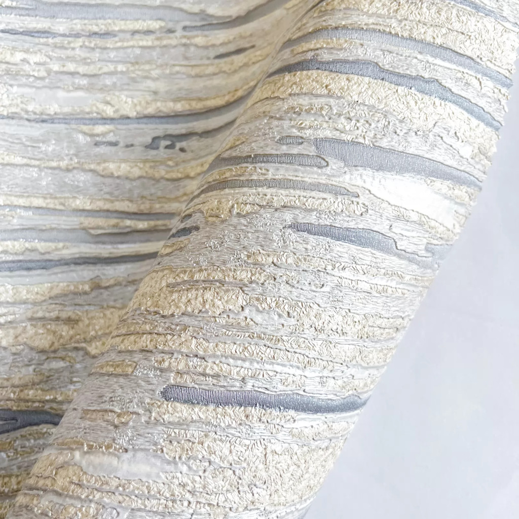 Különleges design tapéta vízszintes irányú, rétegzett struktúrával, fehér-kékesszürke árnyalatban