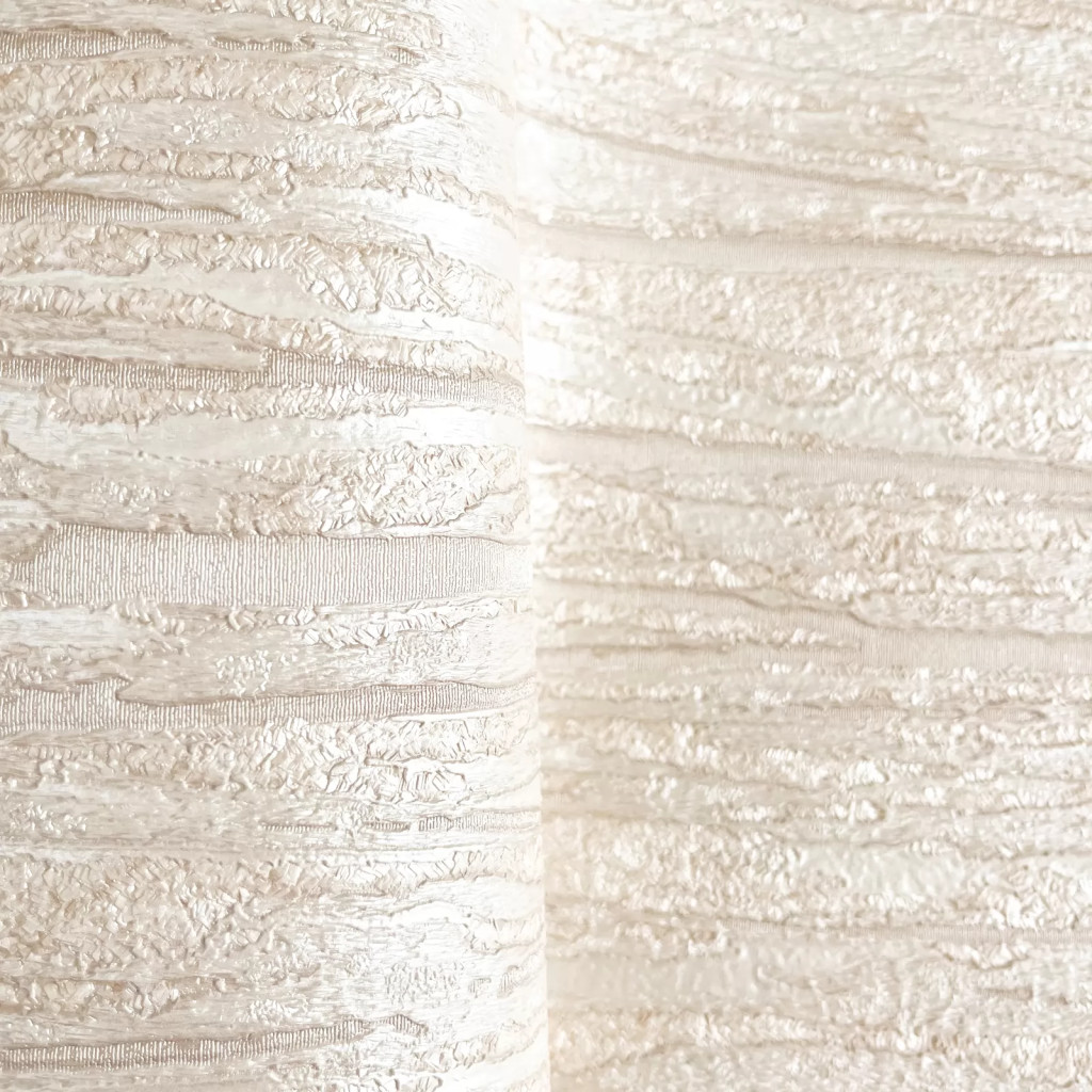 Különleges design tapéta vízszintes irányú, rétegzett struktúrával, fehér-krém árnyalatban