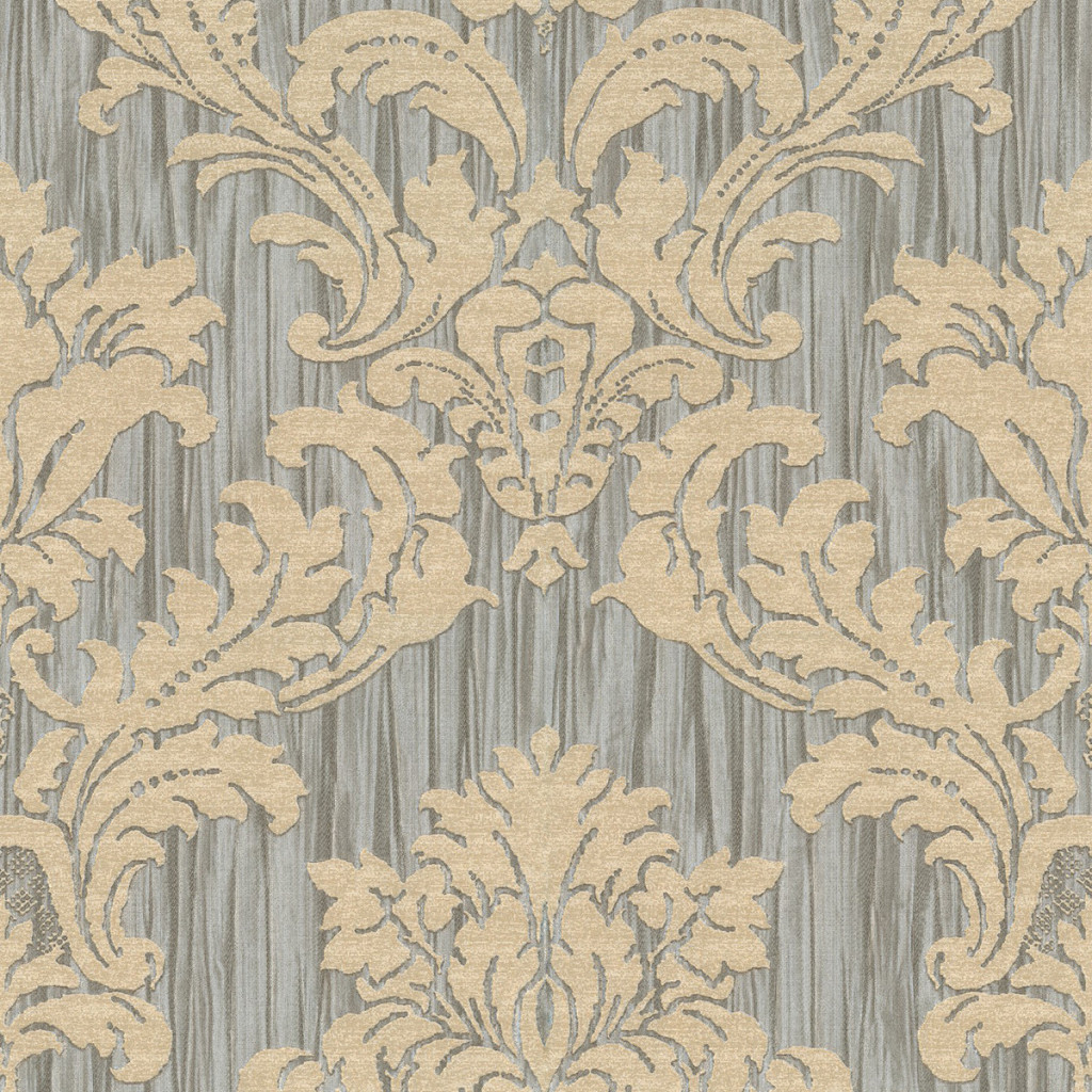 Ez az elegáns damaszt mintás tapéta klasszikus stílusú mintázatával és finoman strukturált felületével időtálló megjelenést kölcsönöz bármely enteriőrnek. A háttérben megjelenő függőleges csíkozás és a kiemelkedő, textilhatású damaszt minta harmonikus és exkluzív összhatást teremt.