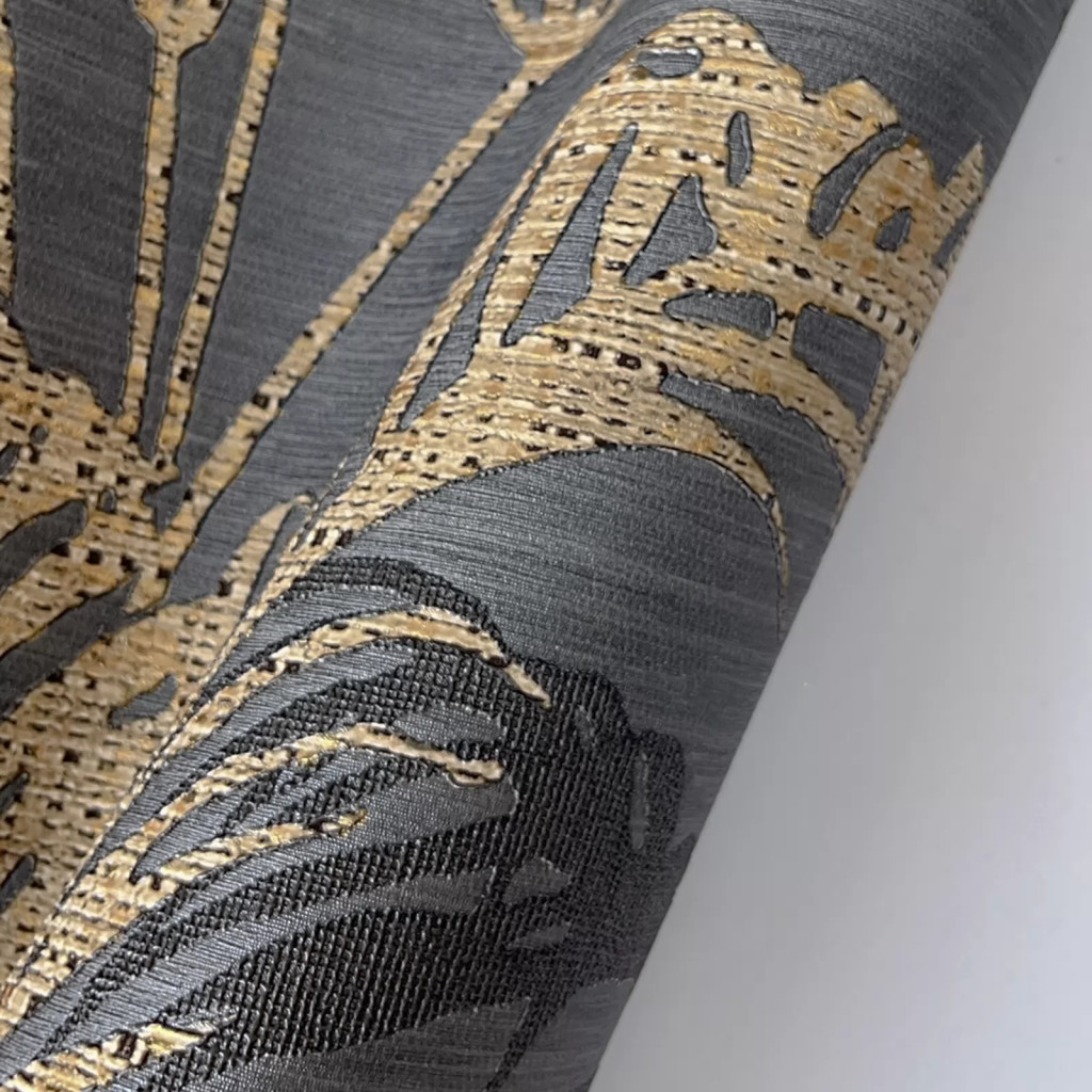 Exkluzív mintás tapéta – strukturált, természet ihlette mintával a szürke-arany  árnyalataiban