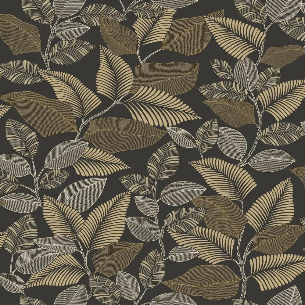 Modern levélmintás design tapéta – botanikus mintás dekor tapéta nappaliba és hálószobába barna -arany színben