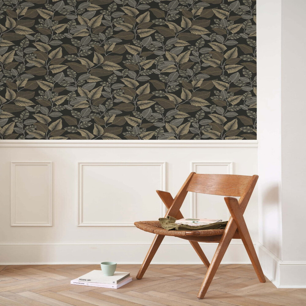 A levélmintás design tapéta természet ihlette mintavilágával különleges és modern faldekorációt biztosít az enteriőrben. A finoman rajzolt, stilizált levelekből álló ismétlődő minta elegáns és dekoratív megjelenést ad a falnak, miközben harmonikus és nyugodt hangulatot teremt a térben.