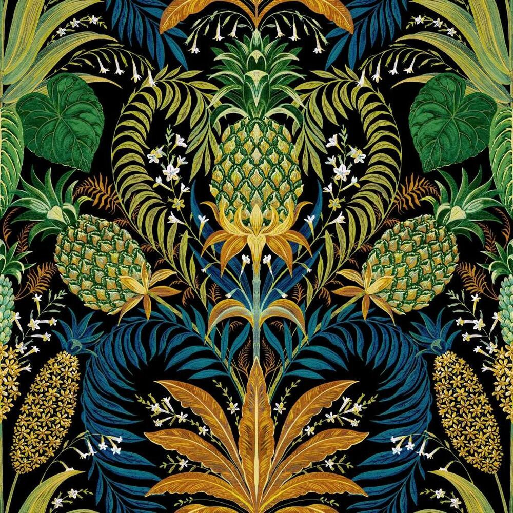 Látványos trópusi mintás tapéta ananász és botanikus növényi motívumokkal. Exkluzív faldekoráció, amely különleges és egzotikus hangulatot teremt nappaliban, étkezőben vagy hálószobában.
