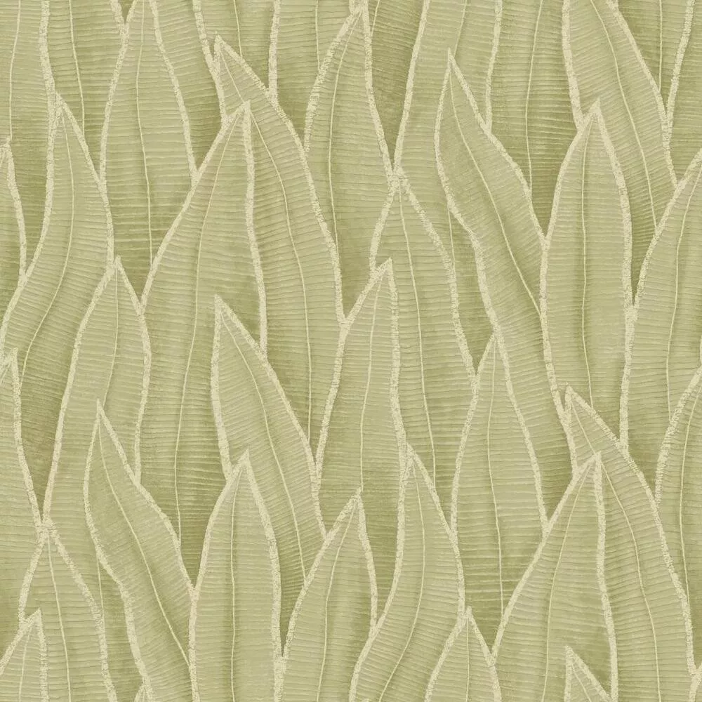 Trópusi levélmintás design tapéta – elegáns botanikus faldekoráció modern enteriőrökbe ,halvány zöld színben