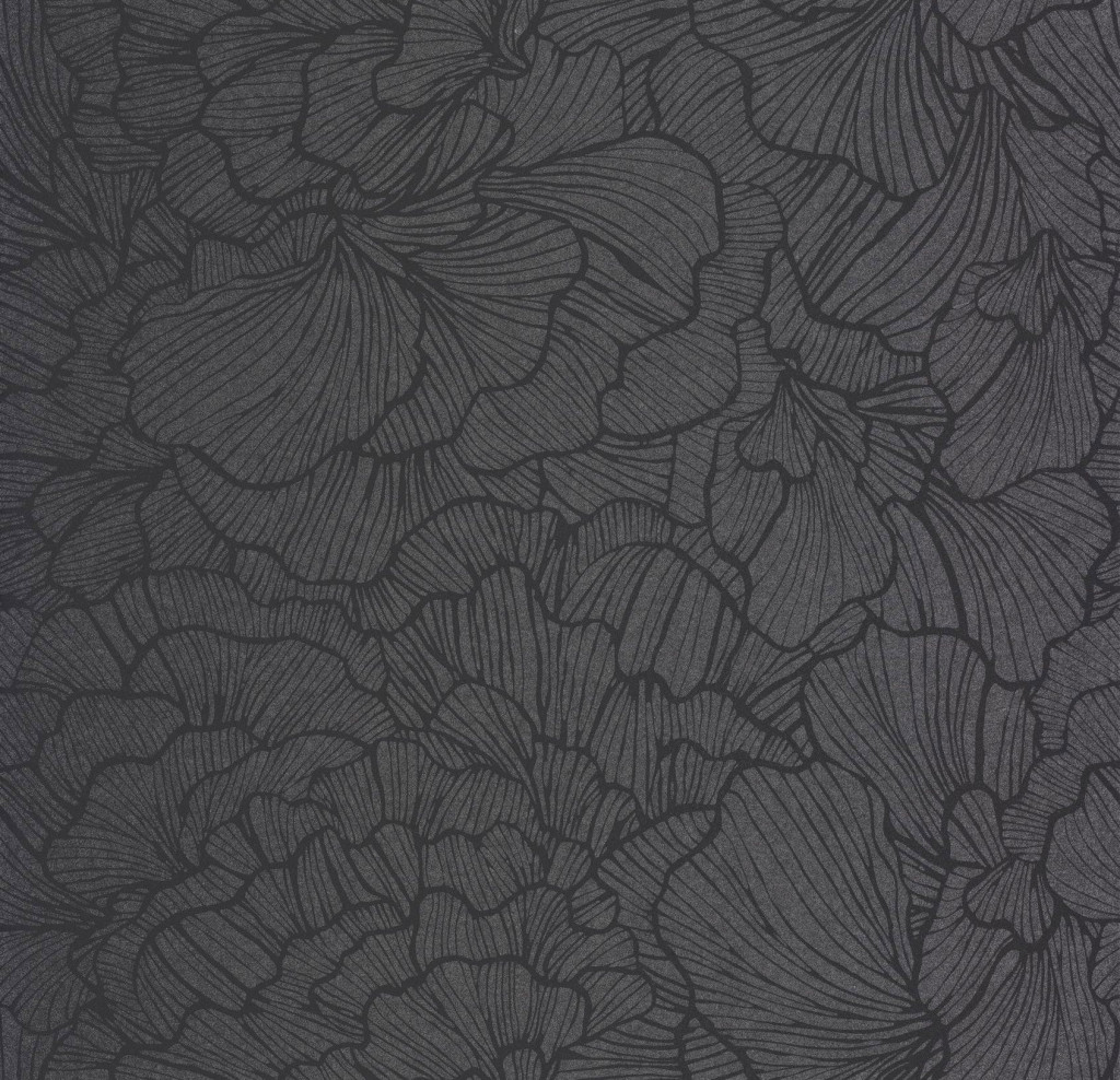 Elegáns ginkgo levél mintás tapéta – modern botanikus  dekortapéta , szürke- fekete színben