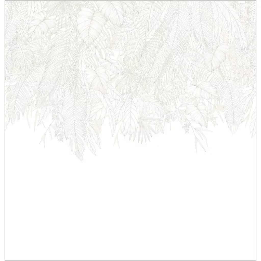 Ez a trópusi leveles design tapéta természet ihlette eleganciát visz az enteriőrbe. A finom vonalrajzzal megjelenített pálmalevelek és egzotikus növények harmonikus kompozíciója könnyed, légies hatást kelt a falon.