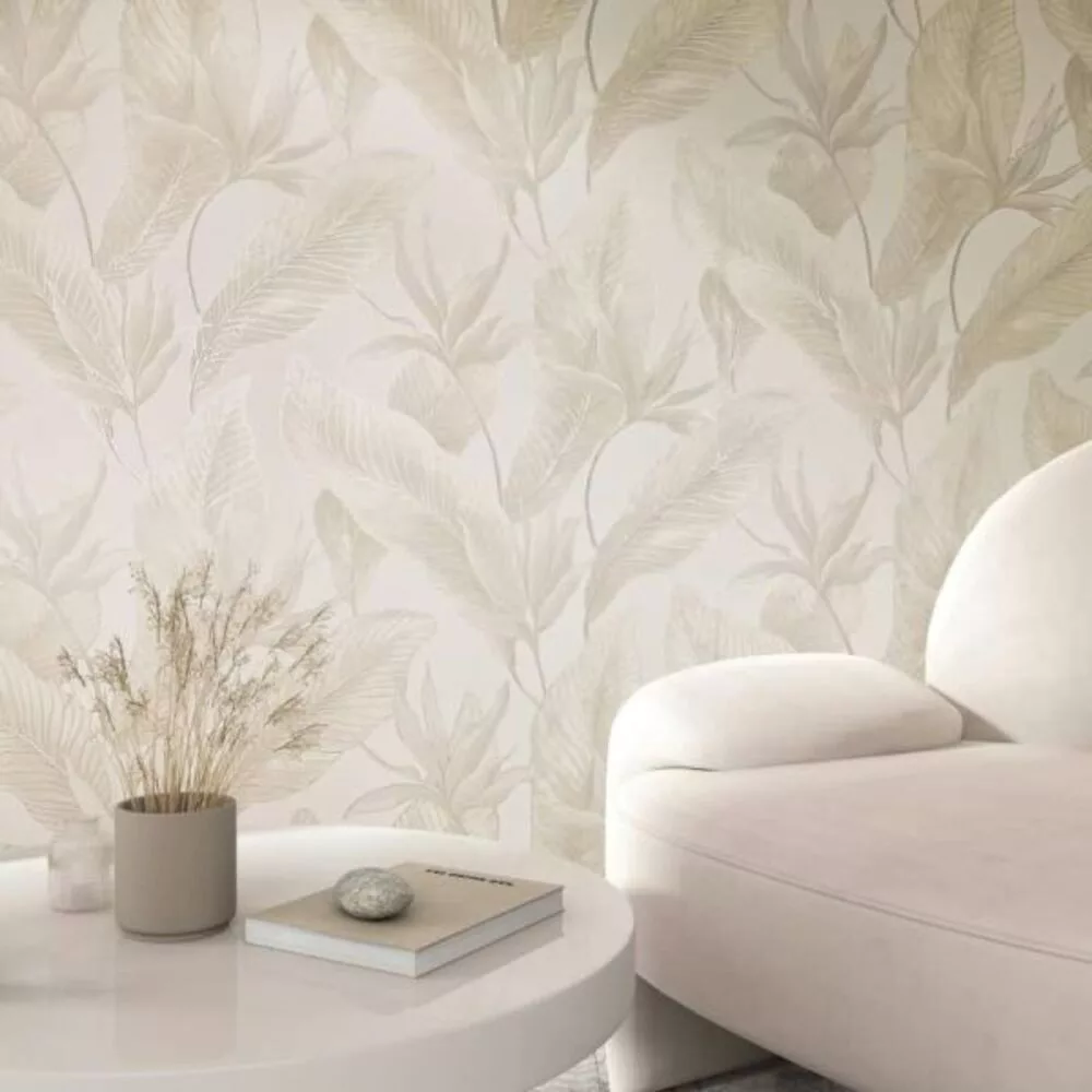 Letisztult, nagy levélmintás tapéta finom textúrával krém,beige kombinációval