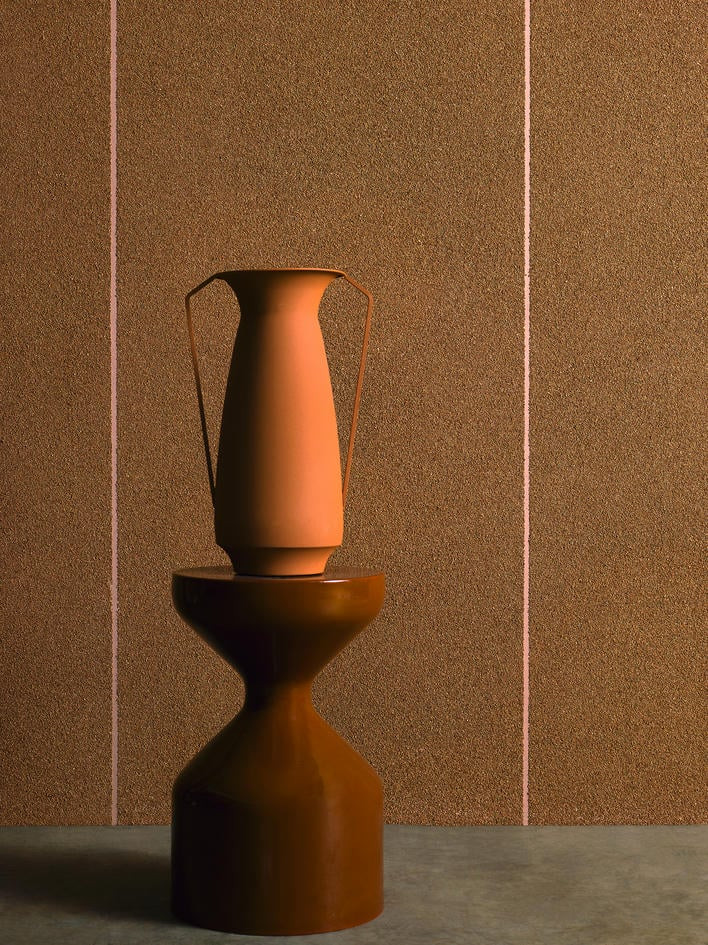 Különleges, természetes , apró parafaszemcsés design tapéta, agyagos textúrával. Meleg, színes megjelenése elegáns és modern enteriőrök tökéletes választása nappaliba, előtérbe vagy hangsúlyfal kialakításához.