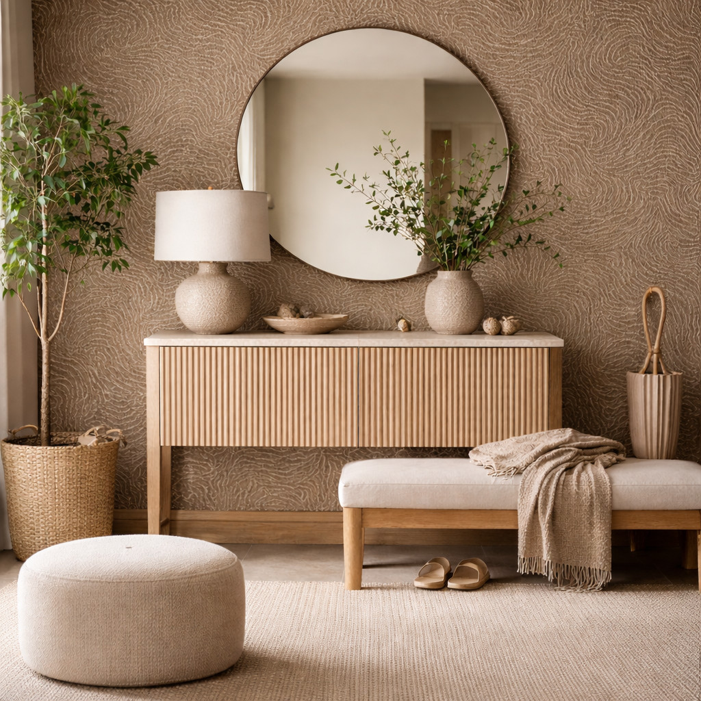 A strukturált felület meleg, luxus összhatást biztosít, miközben a hullámminta finoman oldja a monokróm felületek letisztultságát.
