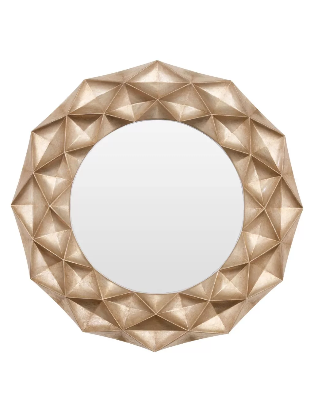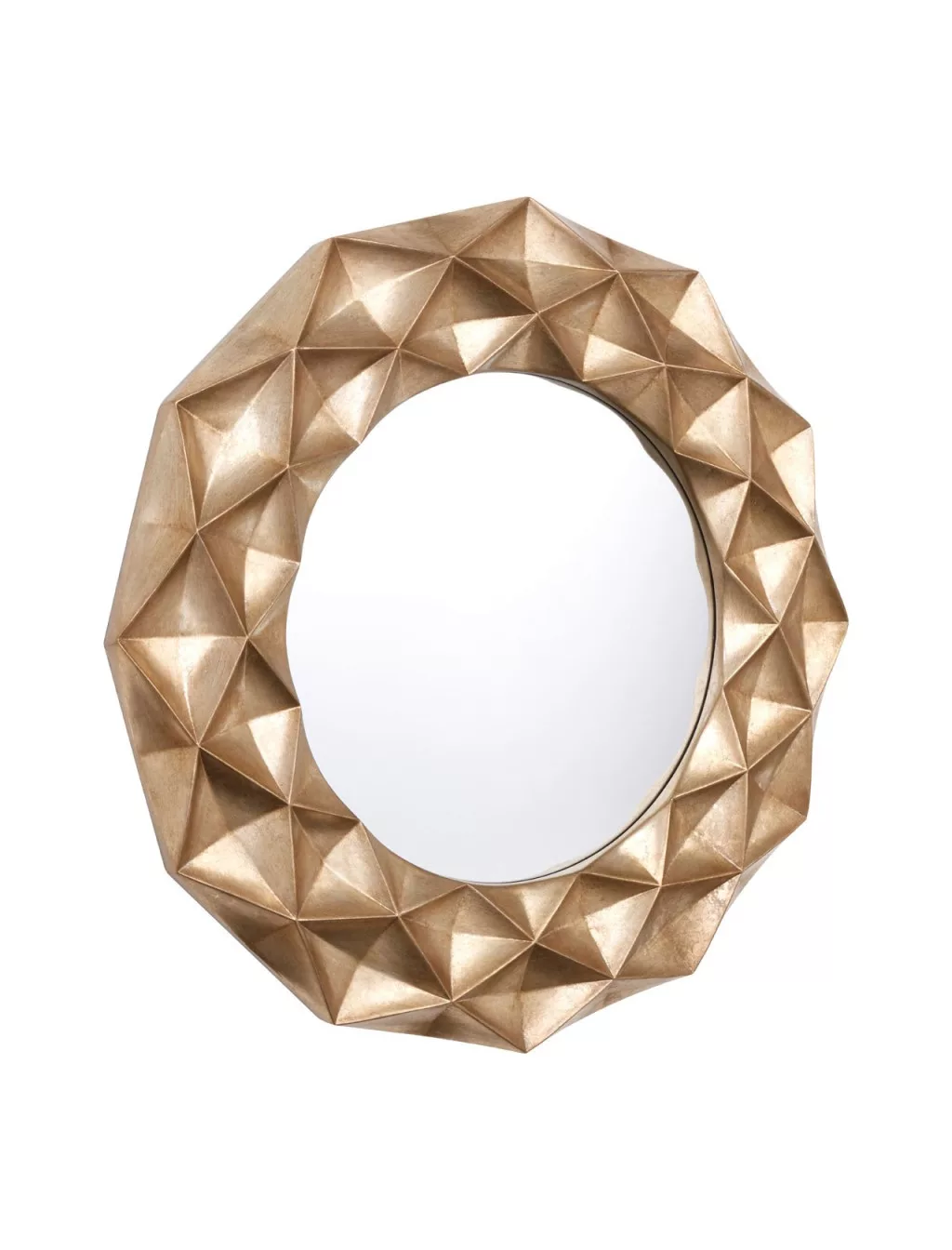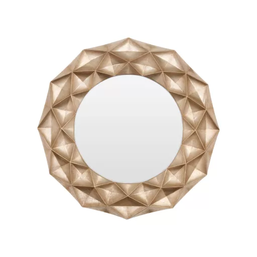 Ez a különleges, geometrikus mintázatú kerek dekor tükör azonnal a tér fókuszpontjává válik. A sokszögű, strukturált keret dinamikus fény-árnyék játékot hoz létre, amely egyedi karaktert és prémium megjelenést kölcsönöz bármely enteriőrnek.