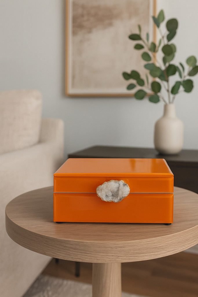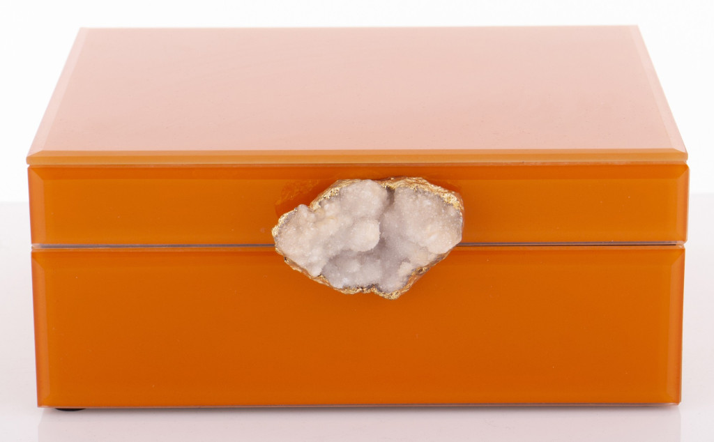 Elegáns, üvegből készült díszdoboz ásványi kő dísszel – praktikus és dekoratív ékszertároló a mindennapi használathoz.