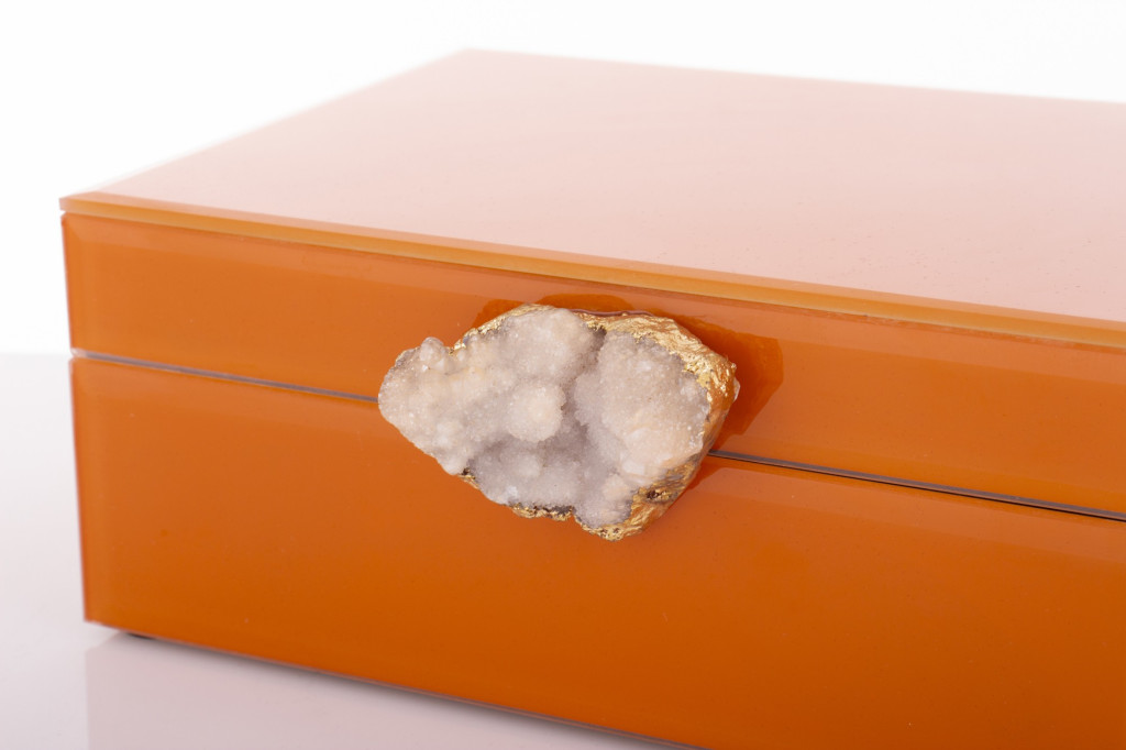 Elegáns, üvegből készült díszdoboz ásványi kő dísszel