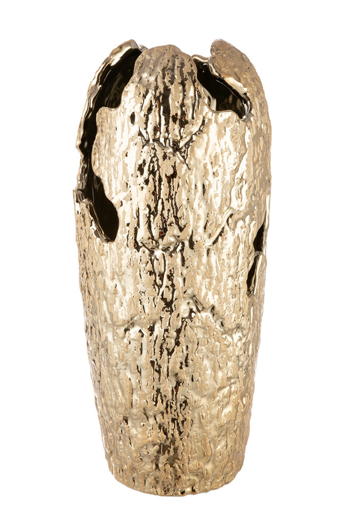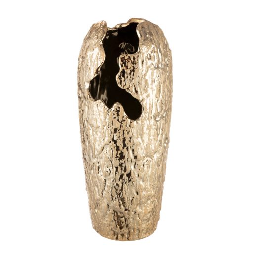 Modern, arany színű kerámia dekor váza különleges textúrával. Letisztult, mégis exkluzív megjelenése tökéletes választás otthoni és terasz dekorációhoz.