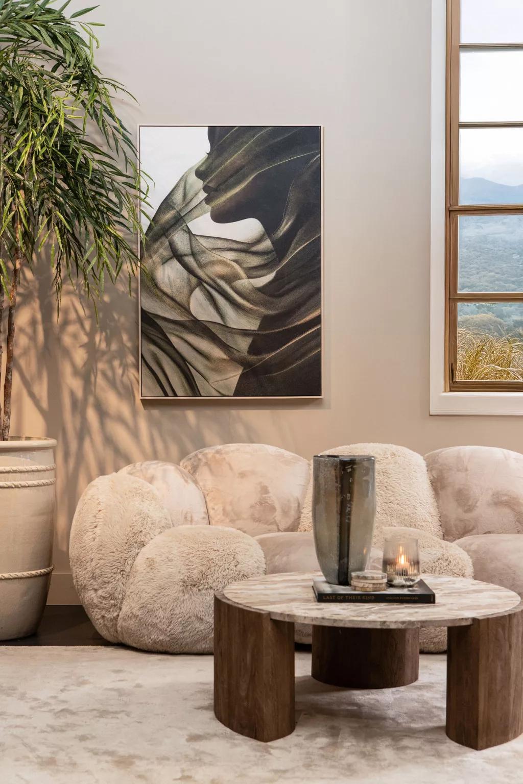 Ez a kerek design asztal természetes fa lábakkal és kőhatású lappal a modern és természetközeli enteriőrök látványos fókuszpontja. A stabil, tömör fa lábak erőt és karaktert adnak az asztalnak, míg a kőhatású asztallap elegáns, prémium megjelenést biztosít. Kerek formájának köszönhetően barátságos és harmonikus térérzetet teremt, így ideális választás nappaliba, étkezőbe vagy exkluzív közösségi terekbe. Időtálló design, amely könnyen illeszkedik modern, mediterrán vagy természetes stílusú lakásokba.