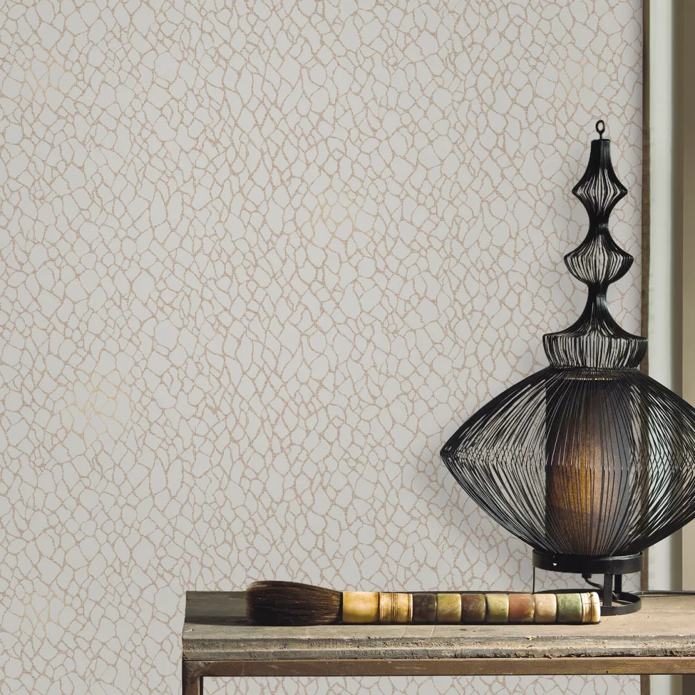 Ez a mozaik design tapéta különleges, szabálytalan mintázatával és finoman kidolgozott arany kontúrjaival prémium megjelenést kölcsönöz a falaknak. A mozaikszerű formajáték elegáns ritmust és vizuális mélységet ad a felületnek, miközben a visszafogott arany vonalak luxus hatást teremtenek.
