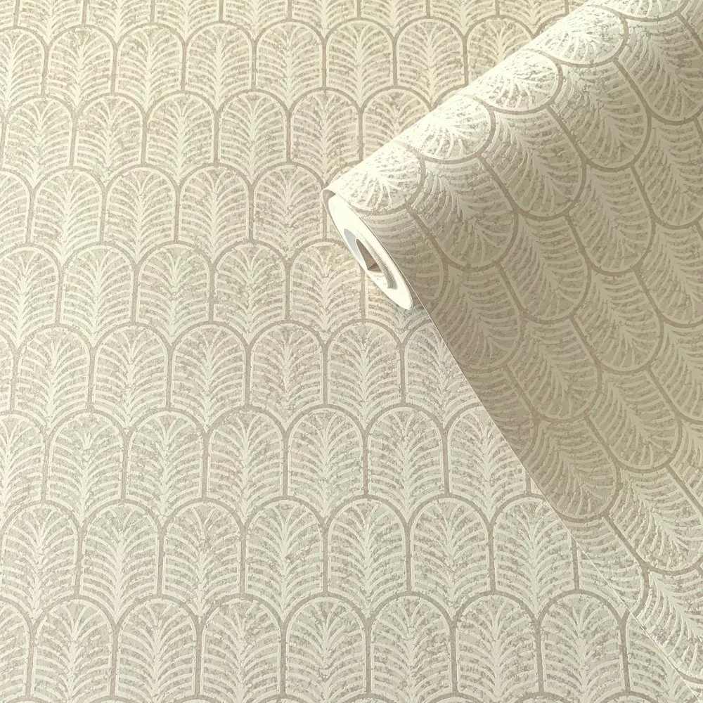 Elegáns pálmalevél ihletésű art deco tapéta , geometrikus mintával krém színben