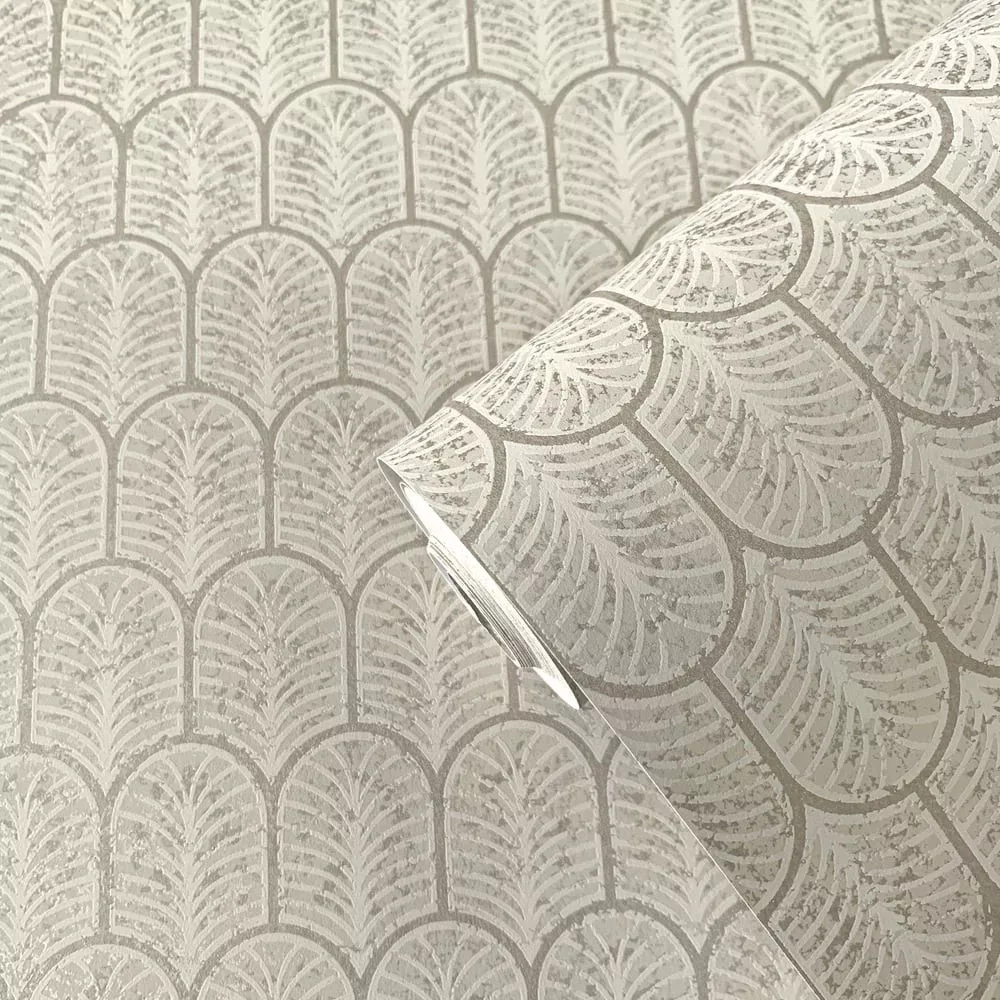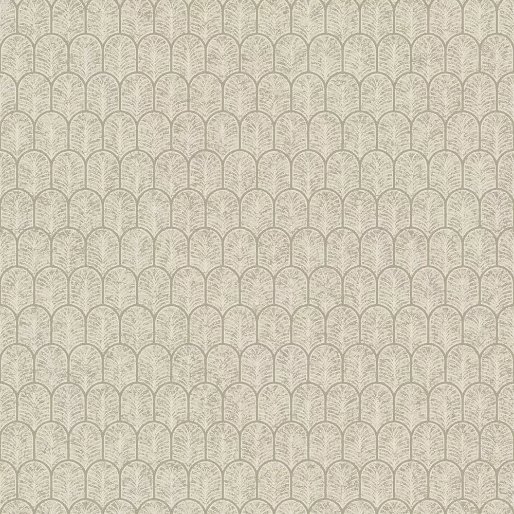 Elegáns pálmalevél ihletésű art deco tapéta , geometrikus mintával szürkésbeige színben