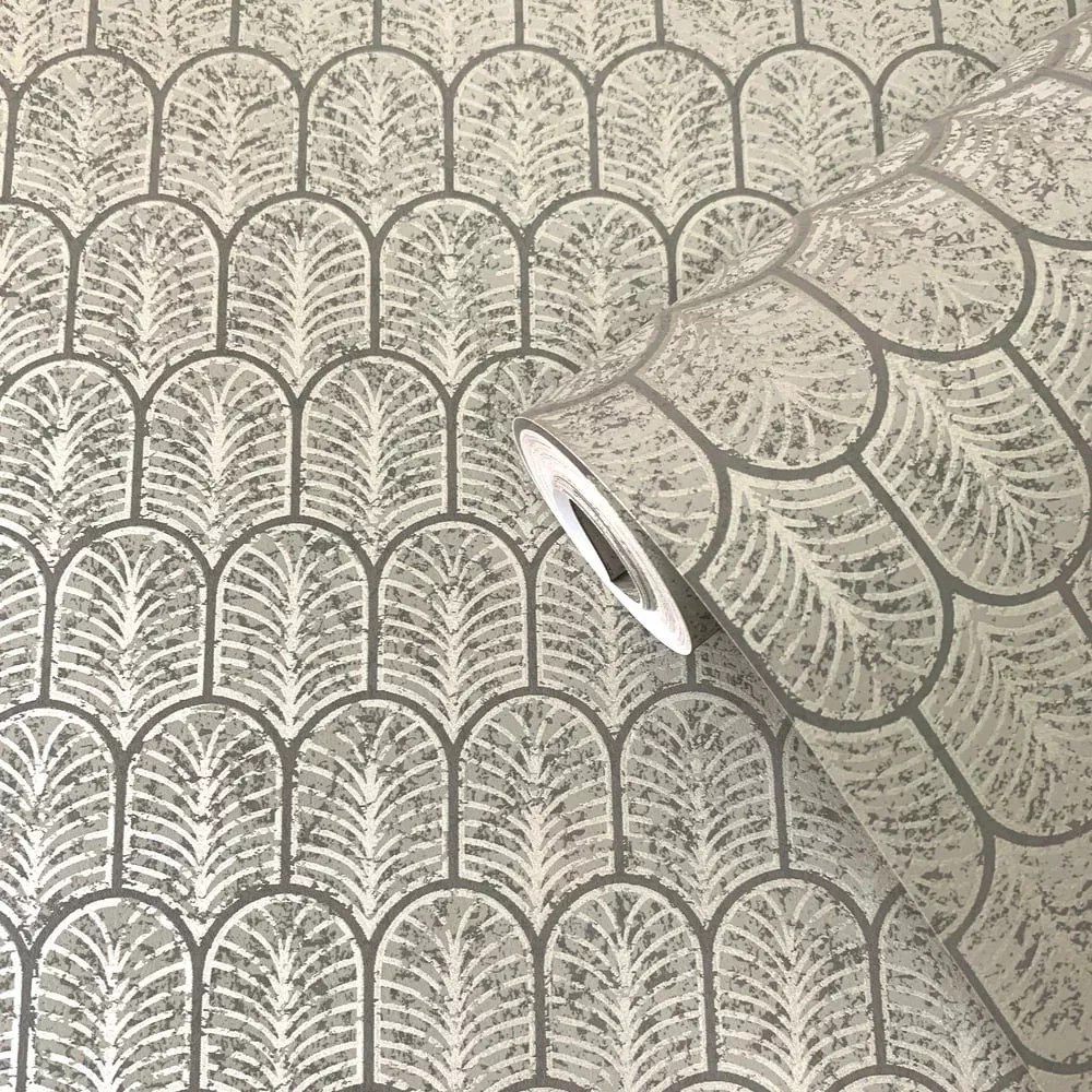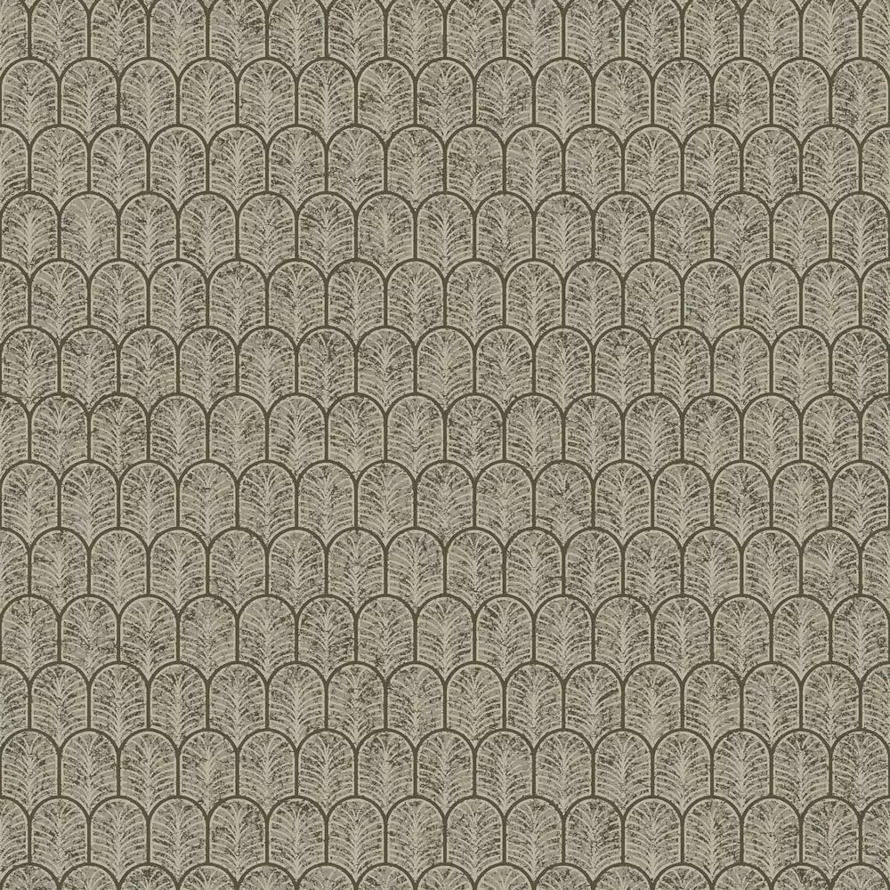 Elegáns pálmalevél ihletésű art deco tapéta , geometrikus mintával meleg szürke-bronz színben