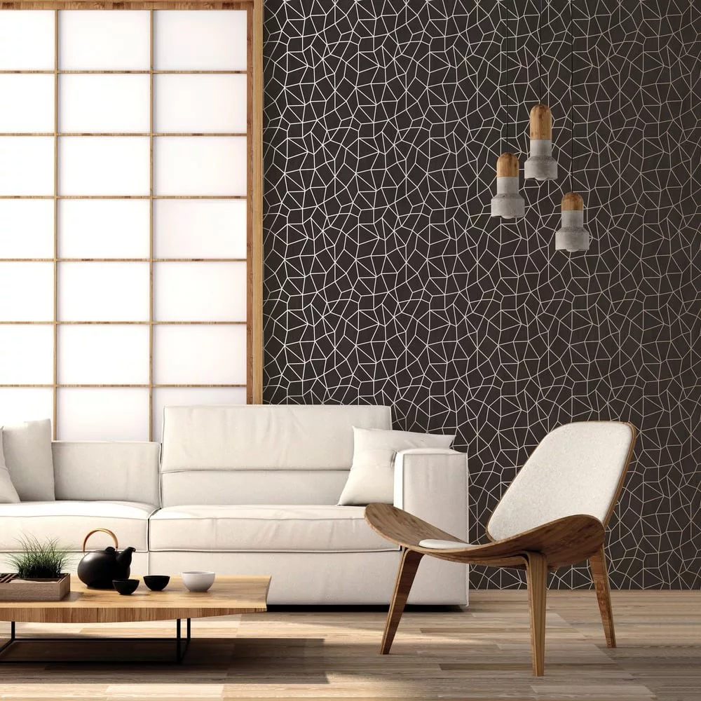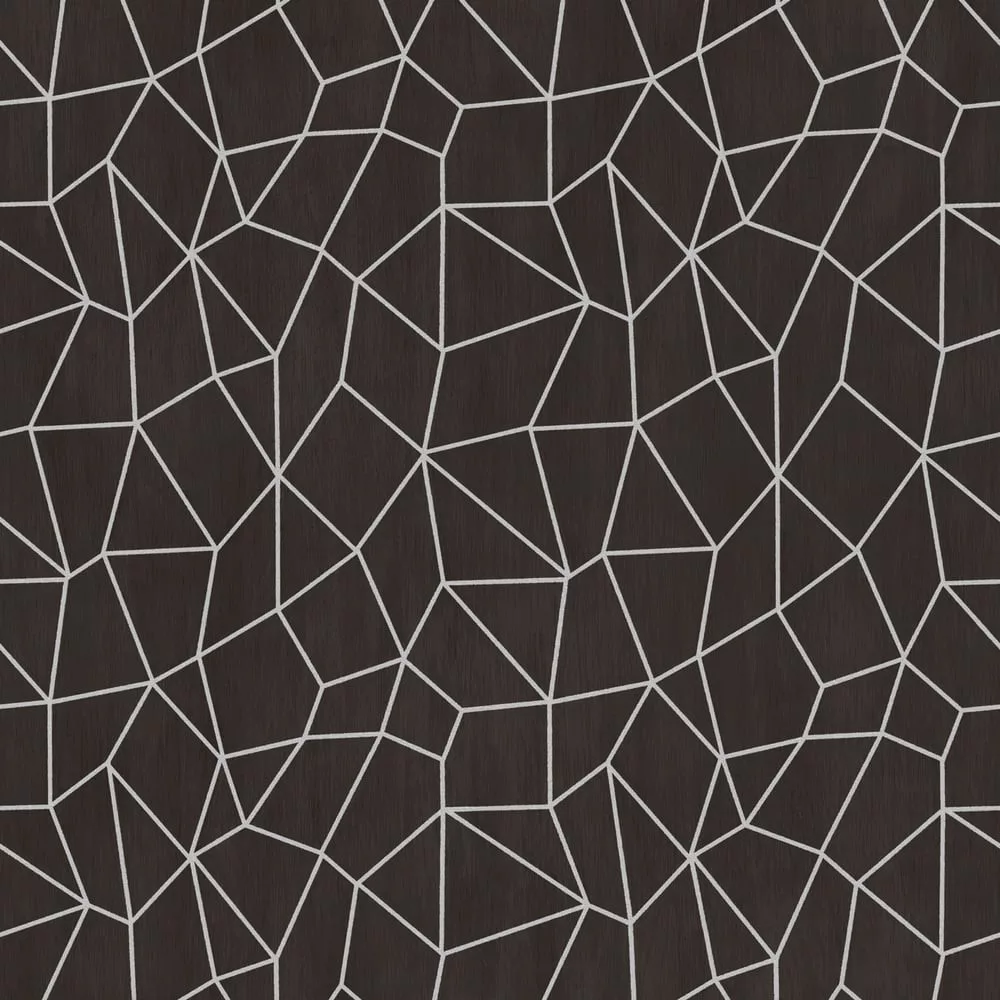 Modern, letisztult geometrikus mintás tapéta finom vonalháló mintával  sötétbarna-ezüst fémes csillogásal
