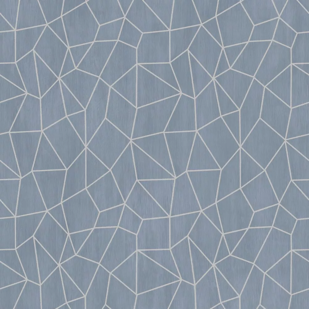Modern, letisztult geometrikus mintás tapéta finom vonalháló mintával  jégkék-ezüst fémes csillogásal