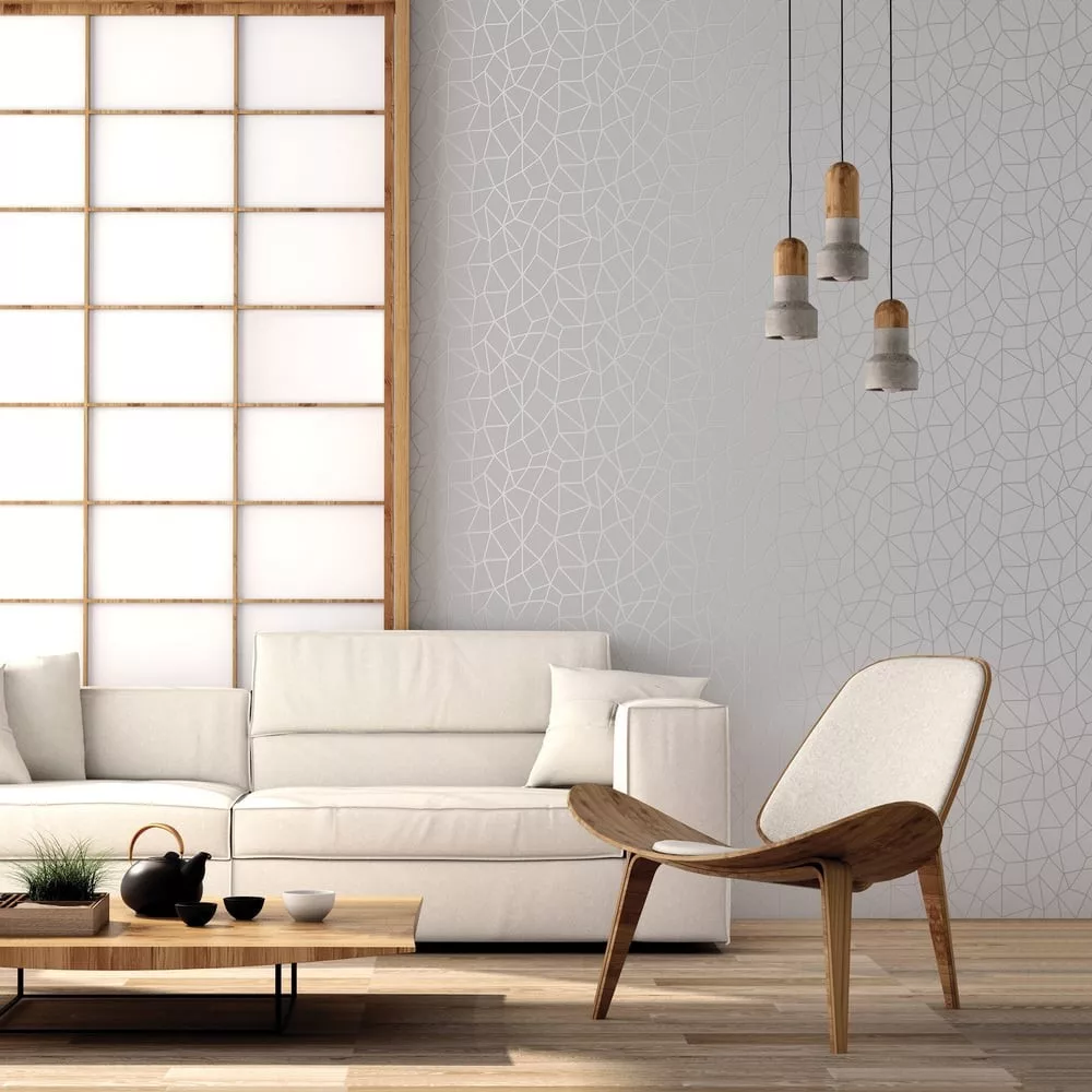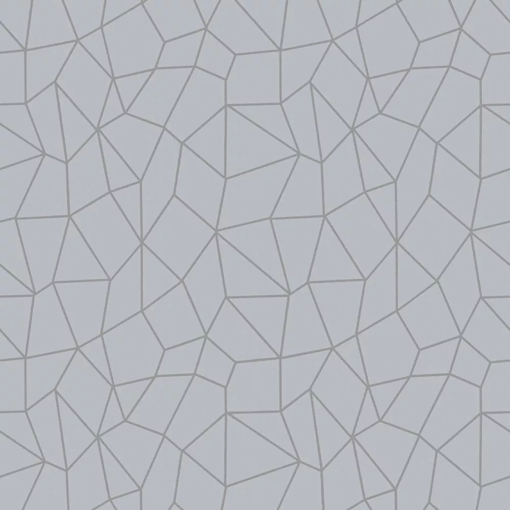 Modern, letisztult geometrikus mintás tapéta finom vonalháló mintával  szürke-ezüst fémes csillogásal