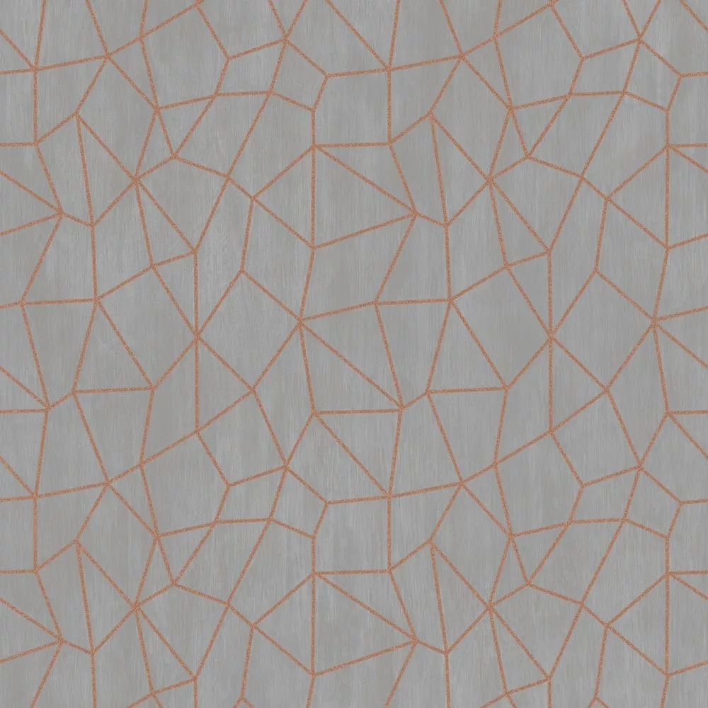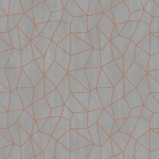 Modern, letisztult geometrikus mintás tapéta finom vonalháló mintával  szürke-réz fémes csillogásal