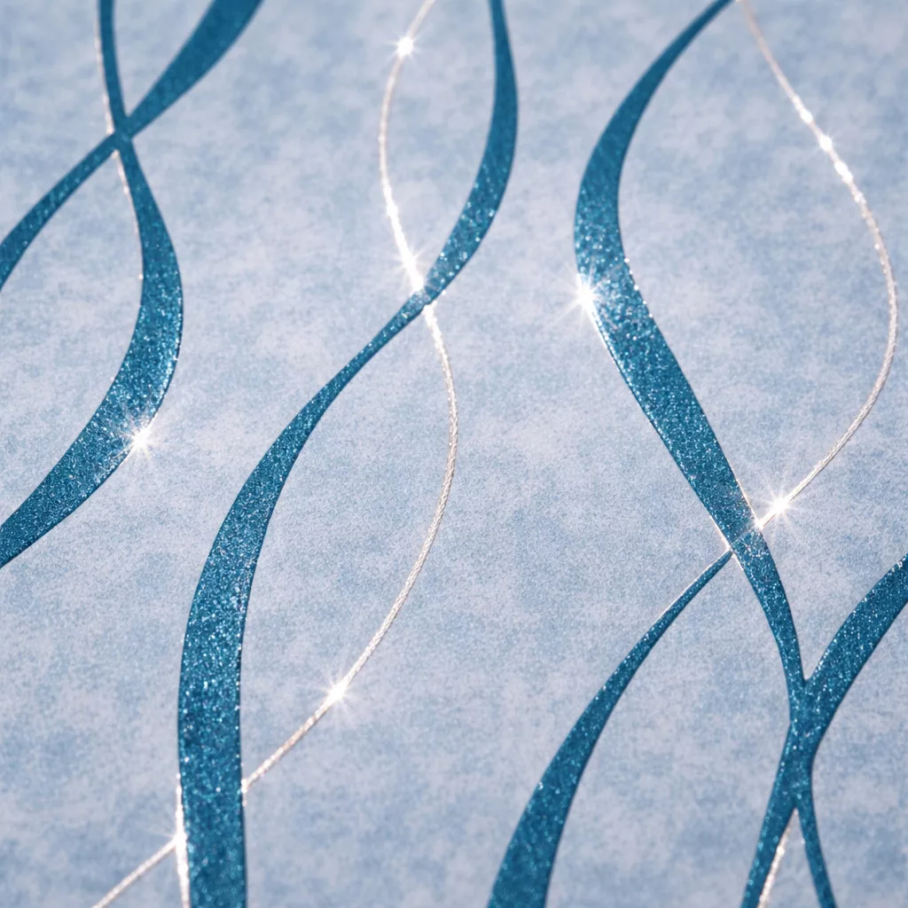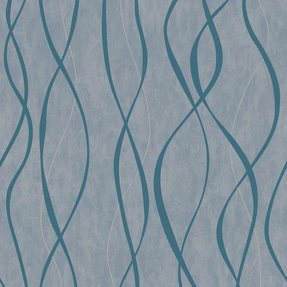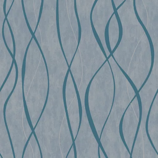 Modern hullámvonal mintás tapéta – elegáns strukturált design tapéta kék színben ,selyemfénnyel