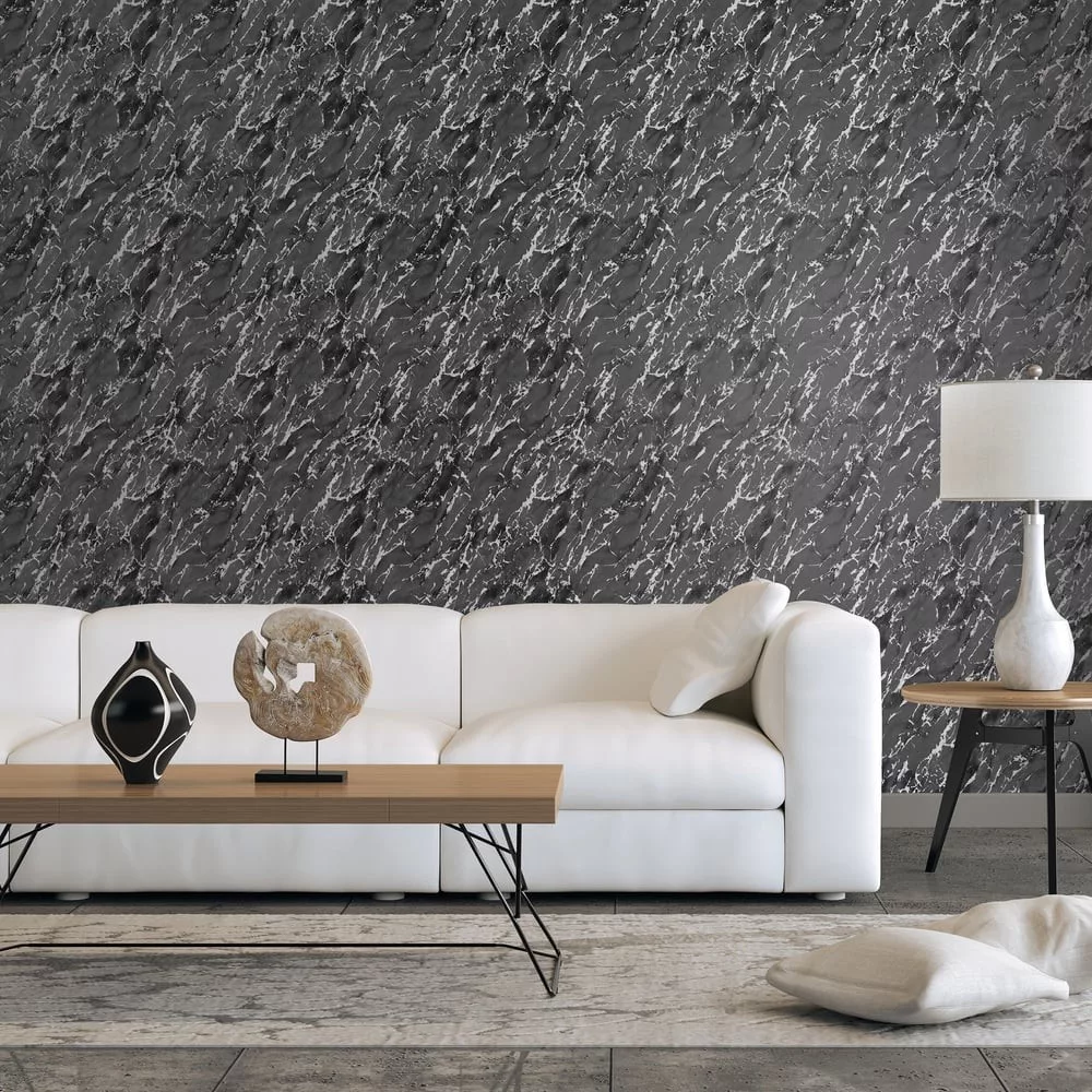 Prémium márvány mintás tapéta – elegáns design tapéta antracit-ezüst fémes csillogásal
