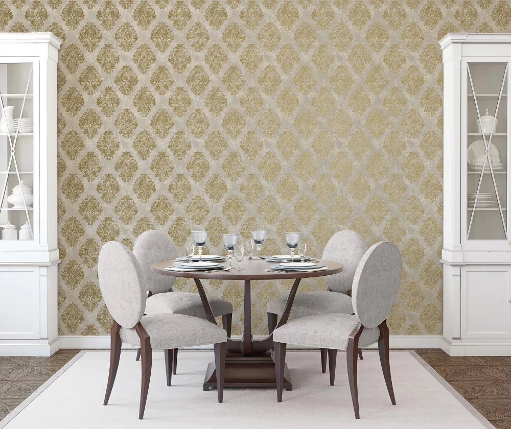Ez a prémium damaszt mintás tapéta a klasszikus elegancia és a modern otthonosság harmonikus kombinációja. A részletgazdag, ornamentális motívumok finoman jelennek meg a világos, meleg tónusú alapon, így a fal különleges mélységet és kifinomult megjelenést kap.