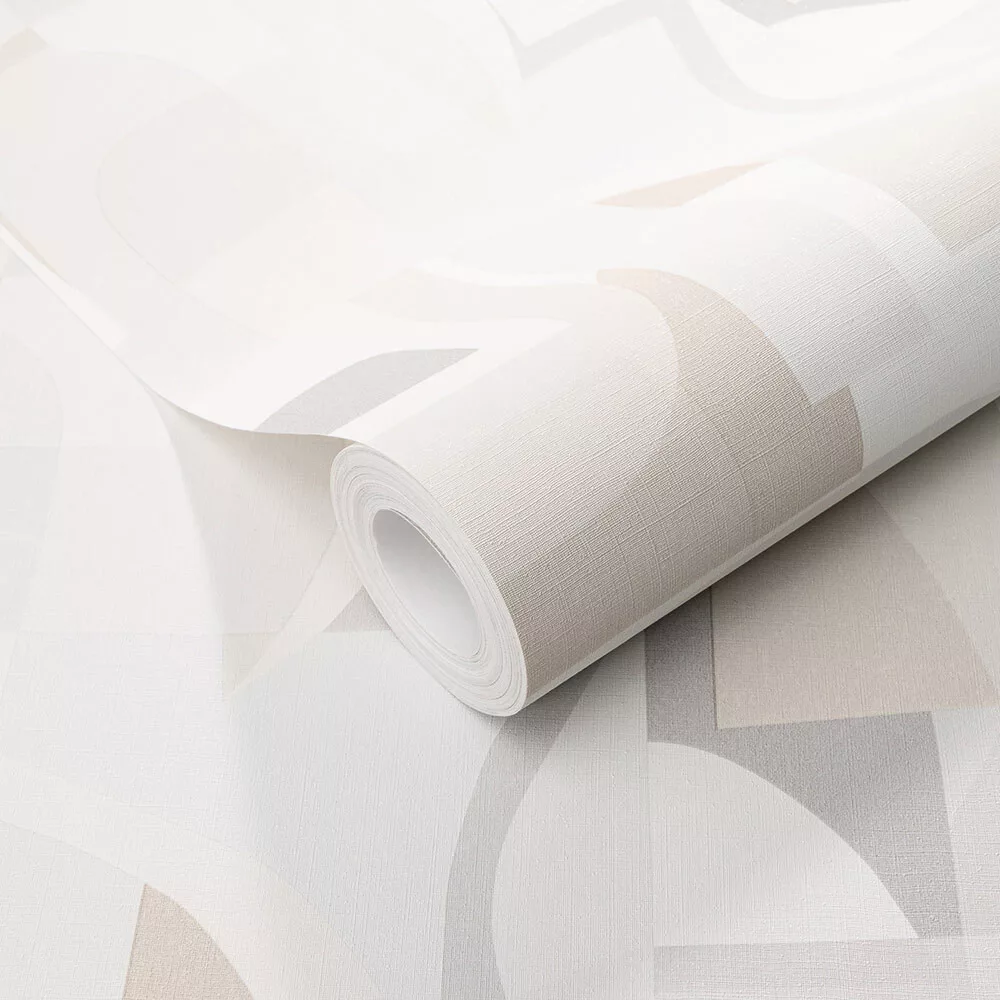 Ez a modern geometrikus mintás tapéta tökéletes választás azok számára, akik egyedi, mégis harmonikus enteriőrt szeretnének kialakítani. Az absztrakt formák és lágy ívek különleges vizuális játékot hoznak létre, miközben a pasztell árnyalatok meleg és otthonos hangulatot biztosítanak.
